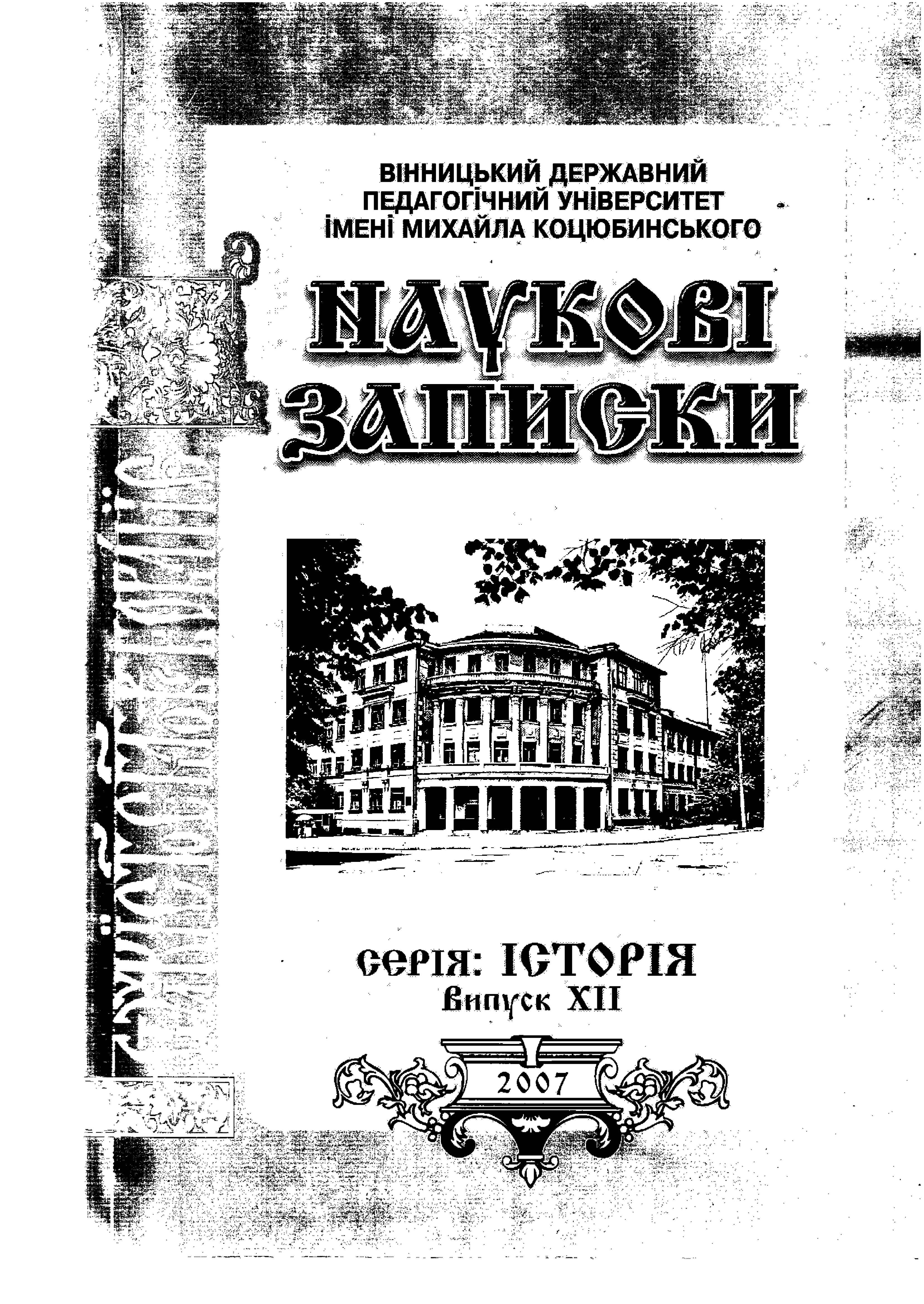 Наукові записки Вінницького державного педагогічного університету імені Михайла Коцюбинського. Вип. 12. Серія: Історія: Збірник наукових праць / За заг. ред. проф. П.С. Григорчука – Вінниця, 2007. – 405 с.